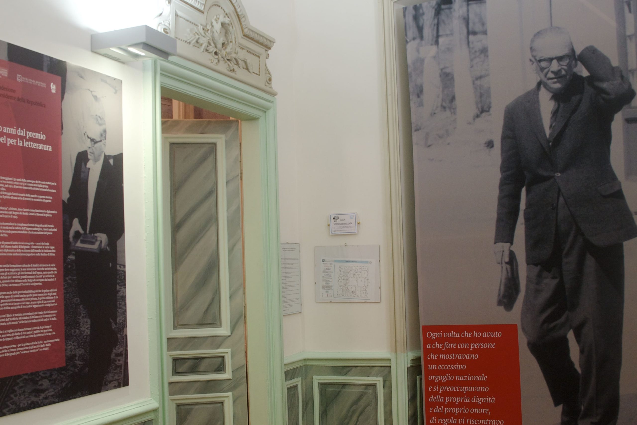 La mostra ricostruisce la complessa vicenda biografica del Premio Nobel che si snoda tra la caduta dell’Impero asburgico, i moti unitaristi jugoslavi, la Seconda guerra mondiale e la ricostruzione del paese realizzata da Tito.