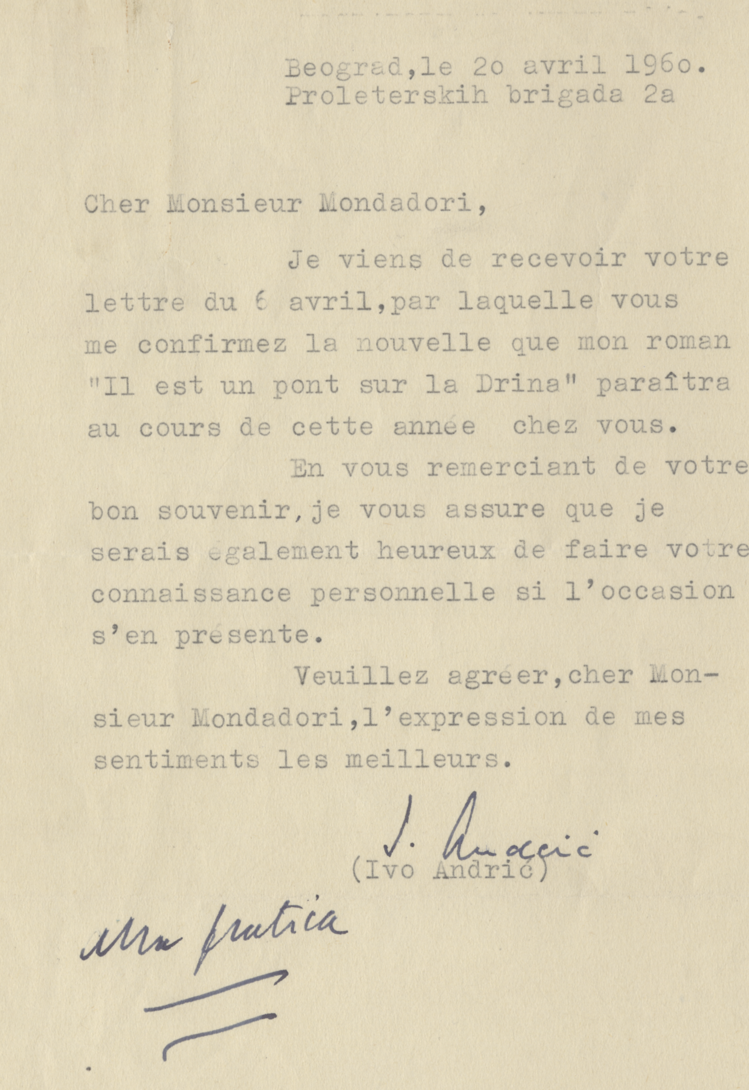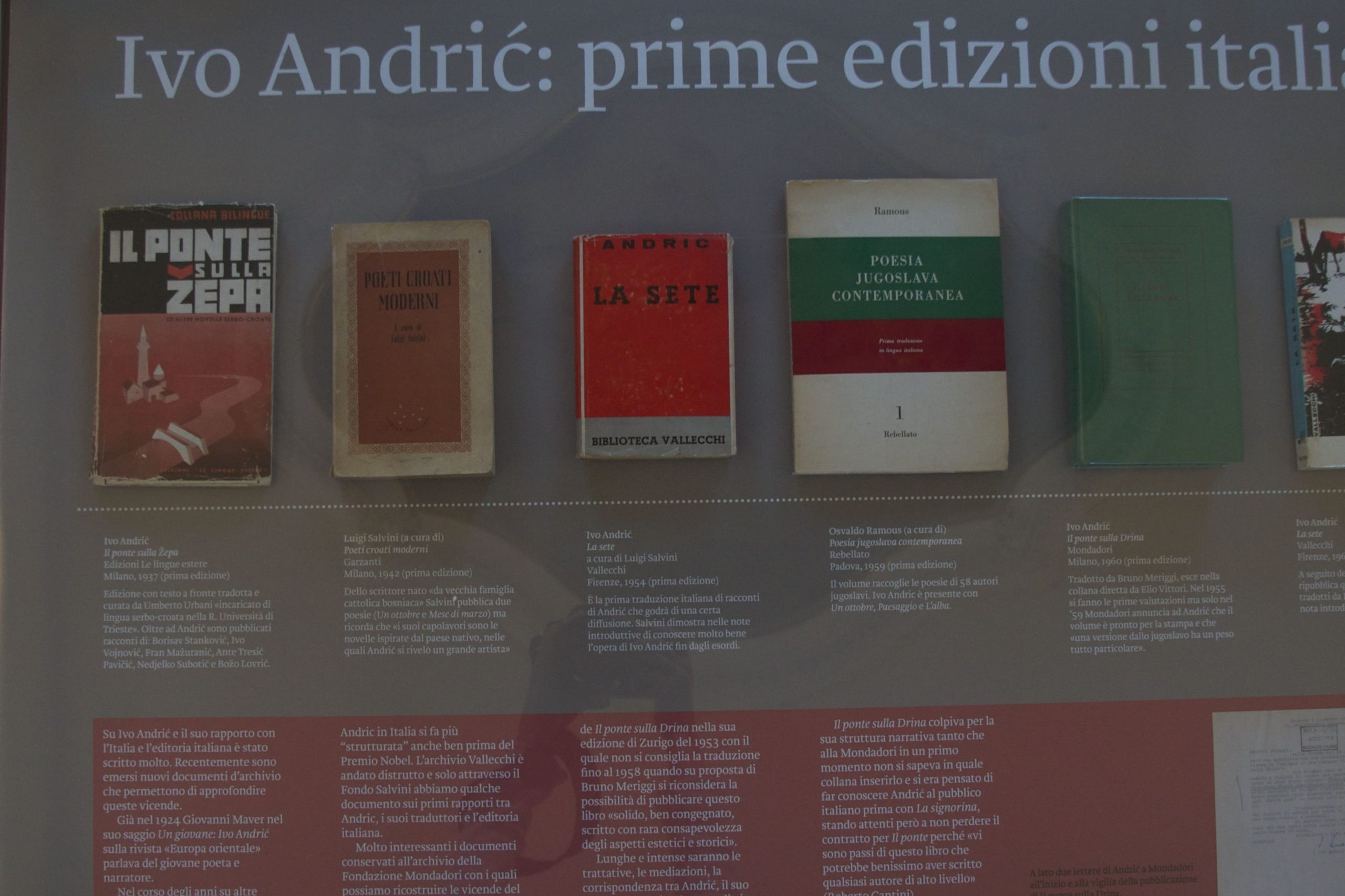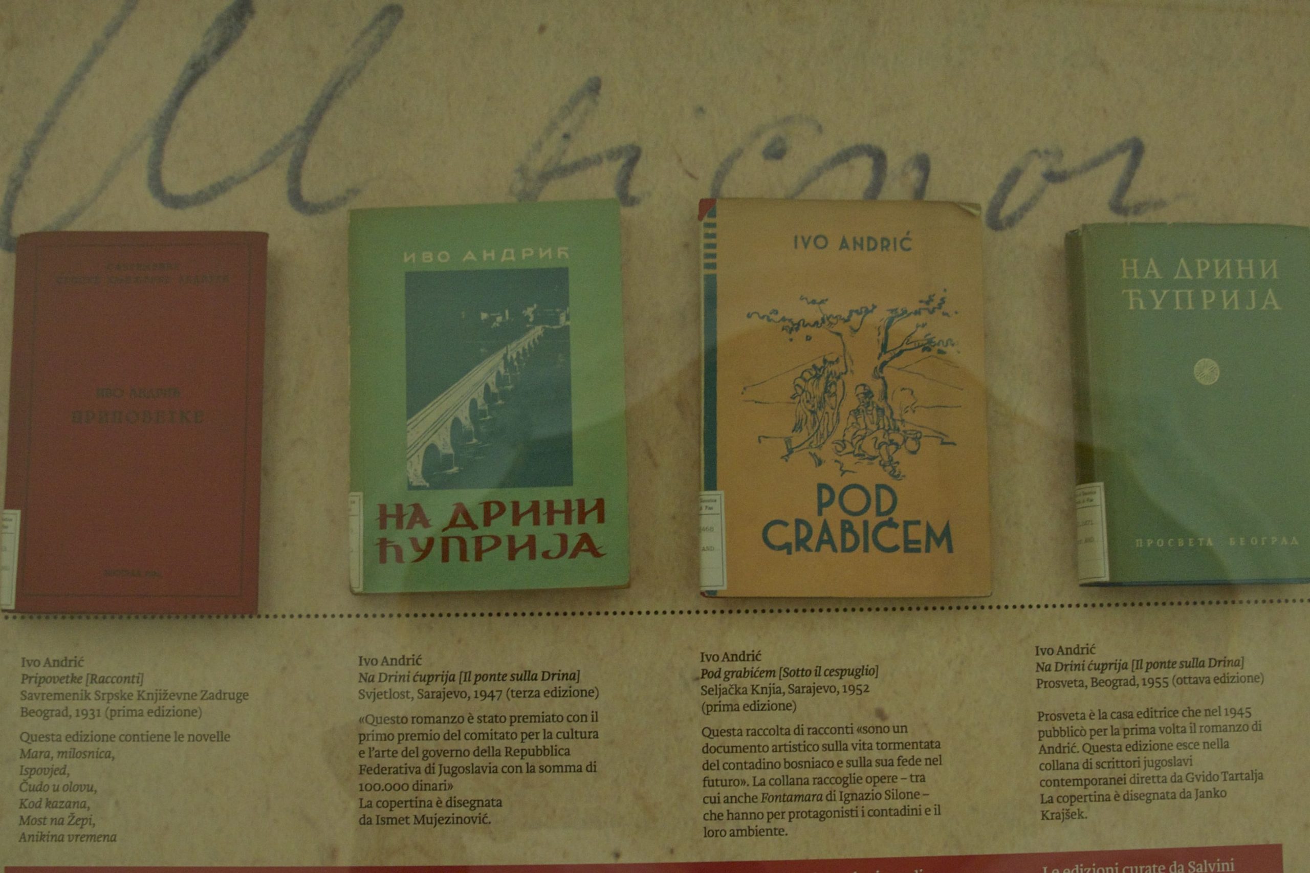 La mostra espone tutte le edizioni italiane di Andrić, anche quelle poco conosciute dei primi anni ’30 e ’40, e ricostruisce le vicende e i rapporti con la casa editrice Mondadori.