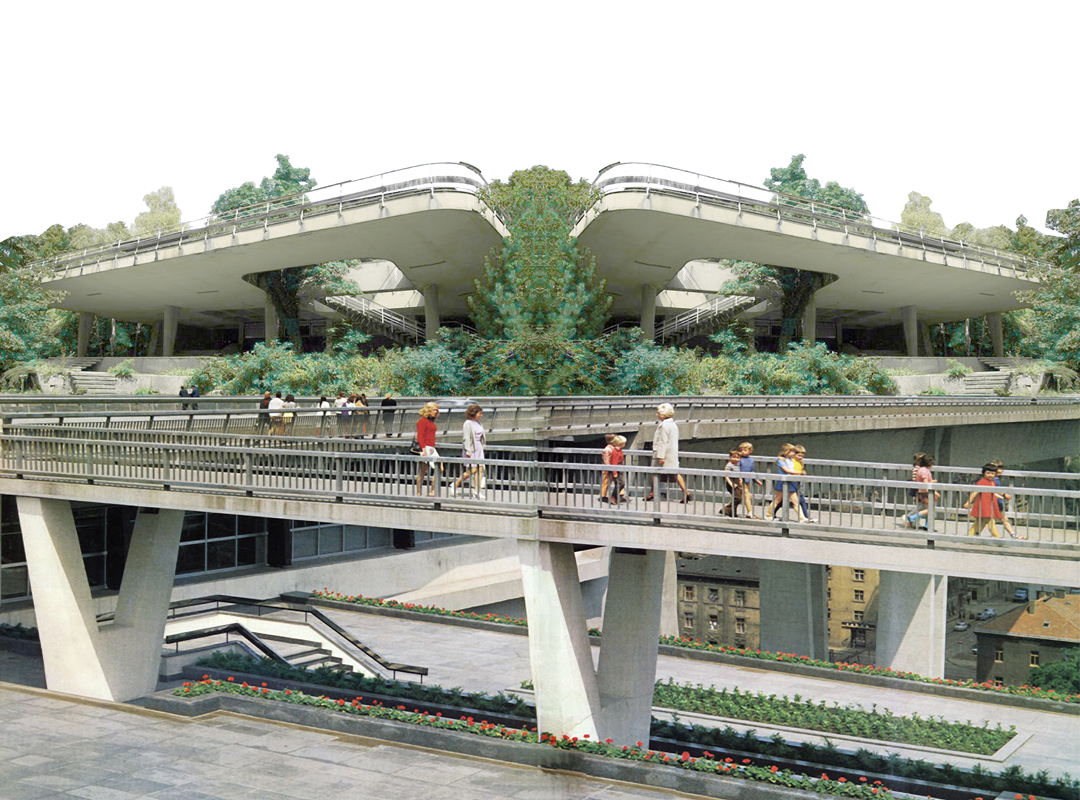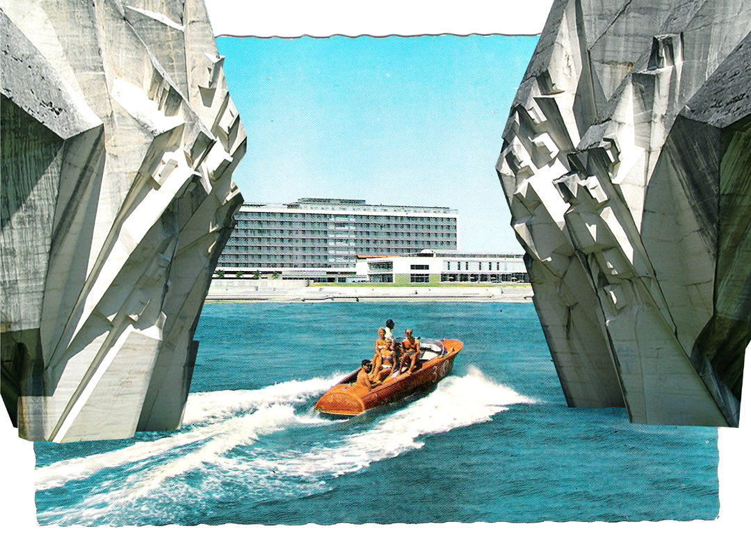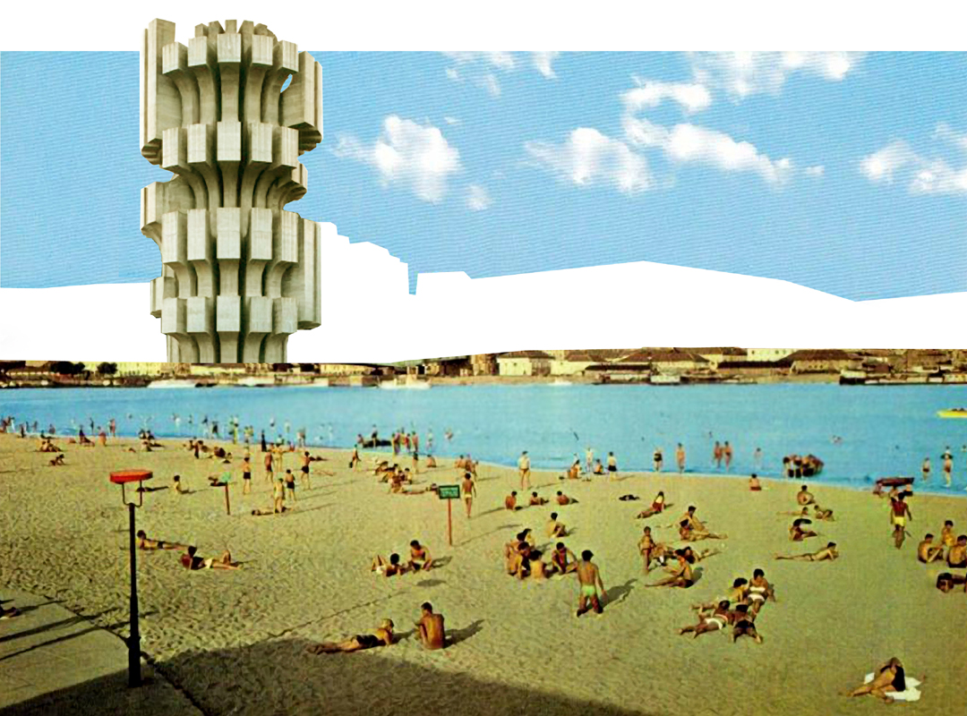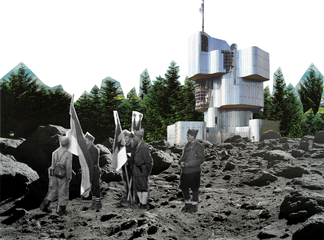 Una serie si surreali collage (ri)leggono in maniera onirica e spesso scanzonata il patrimonio architettonico moderno dell’ex-Jugoslavia.