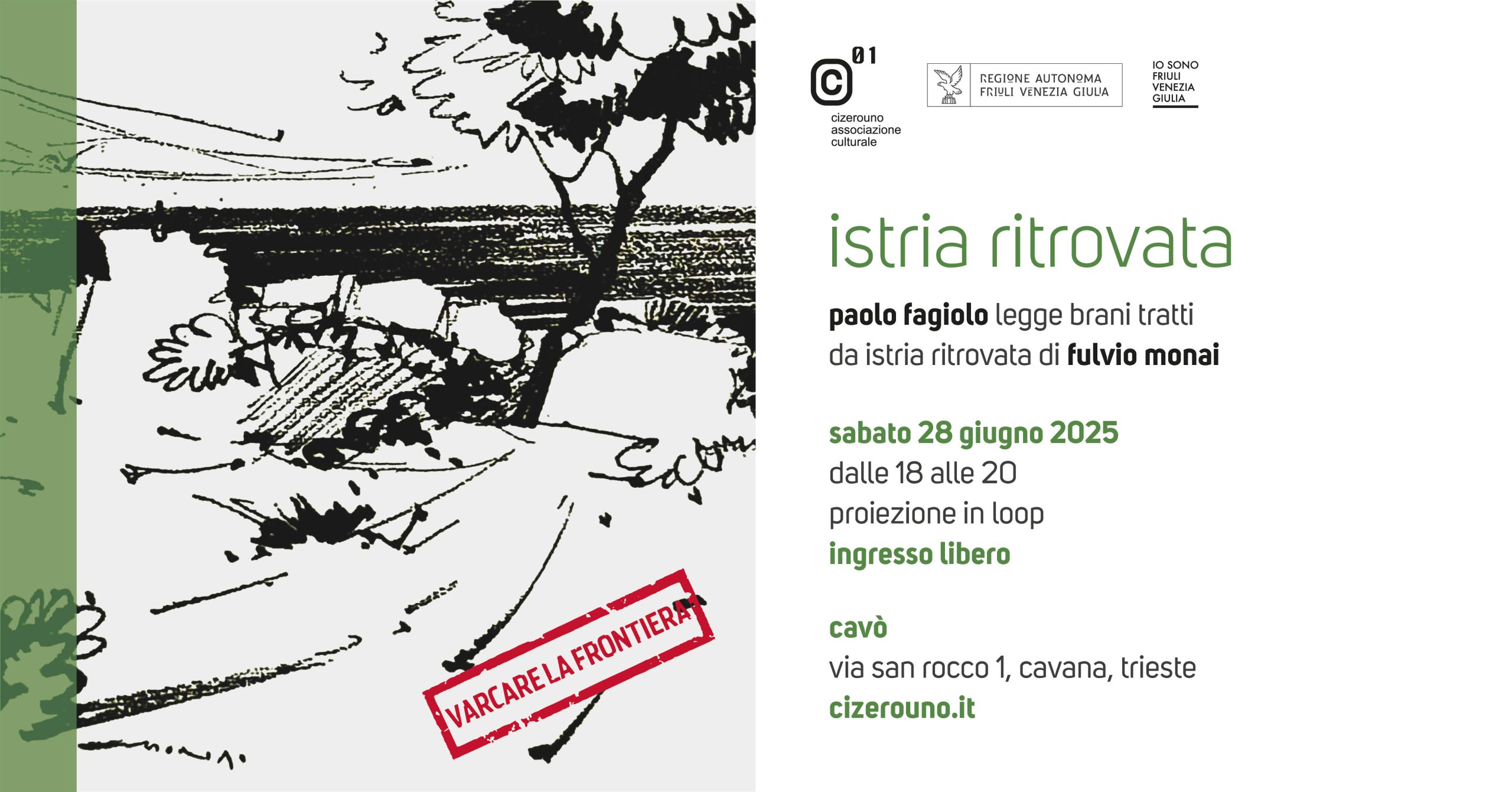 Istria ritrovata è a cura di Massimiliano Schiozzi ed è prodotto da Cizerouno per Varcare la frontiera come lettura performativa dal vivo e come serie di podcast registrati presso l’Urban Recording Studio di Casa della Musica a Trieste.