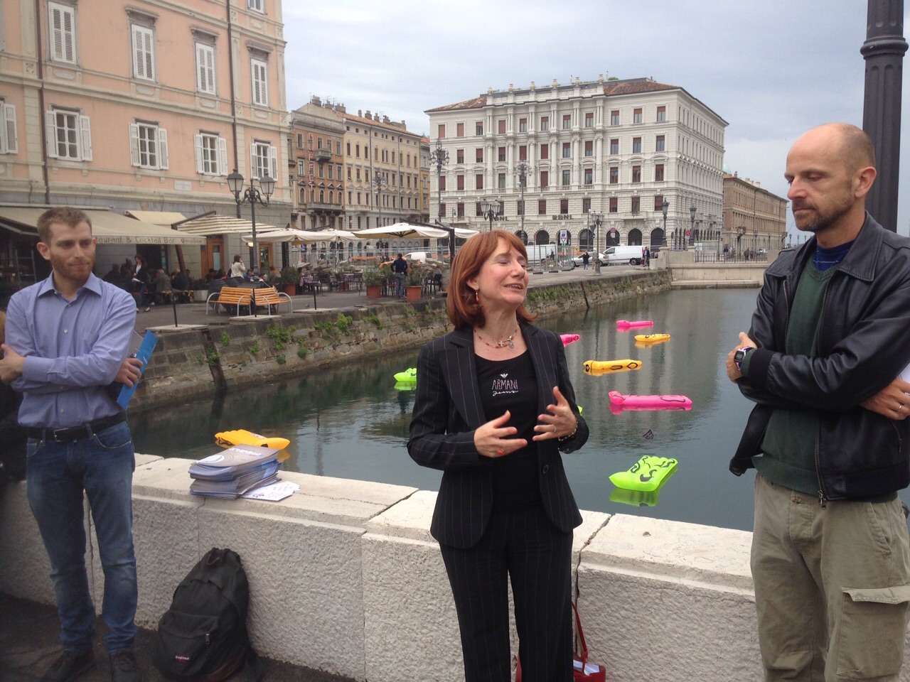 Trieste, da sempre città di immigrazione ed emigrazione, città che ha avuto nei momenti di accoglienza delle diversità i suoi momenti più alti, come testimonia anche la chiesa serbo-ortodossa affacciata sullo stesso specchio d’acqua del canale di Ponterosso, con questo intervento di arte pubblica evoca plasticamente le tragedie che avvengono nel Mediterraneo.