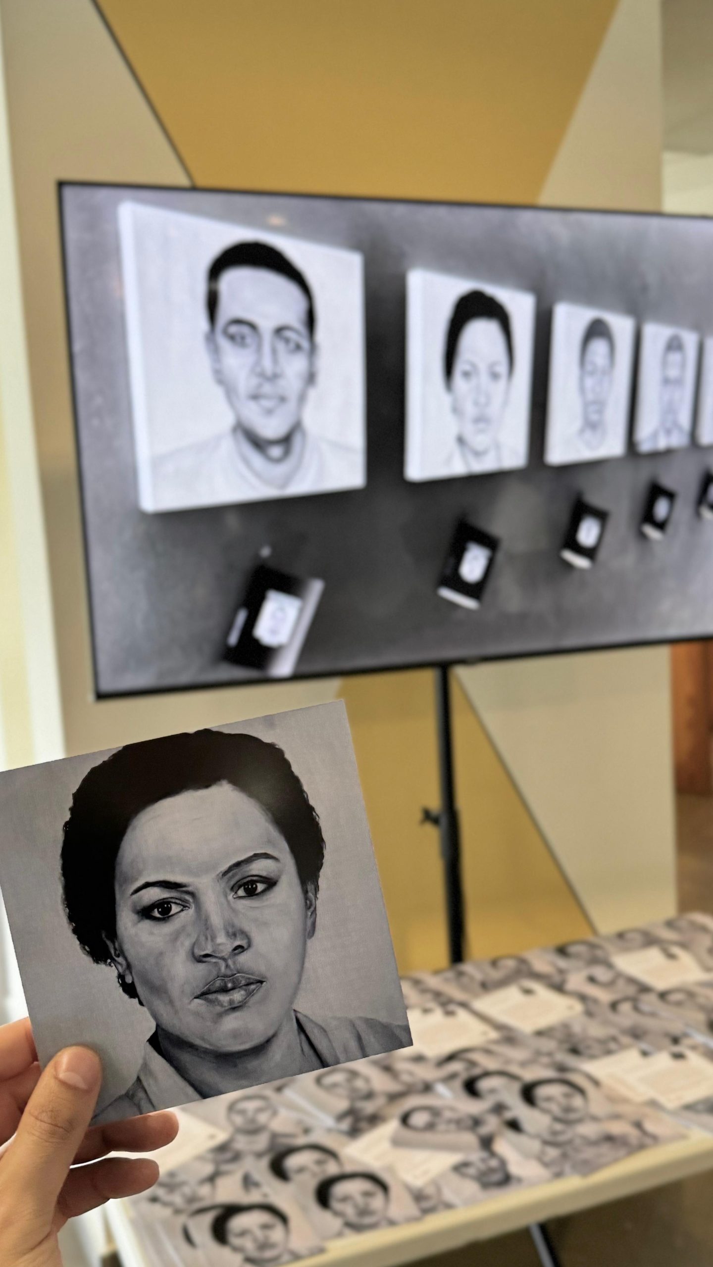 Al Palazzo dei Congressi di Grado è diventato una installazione video accompagnata dai volti dei personaggi ritratti da Adriana Torregrossa stampati su centinaia di cartoline messe a disposizione del pubblico.