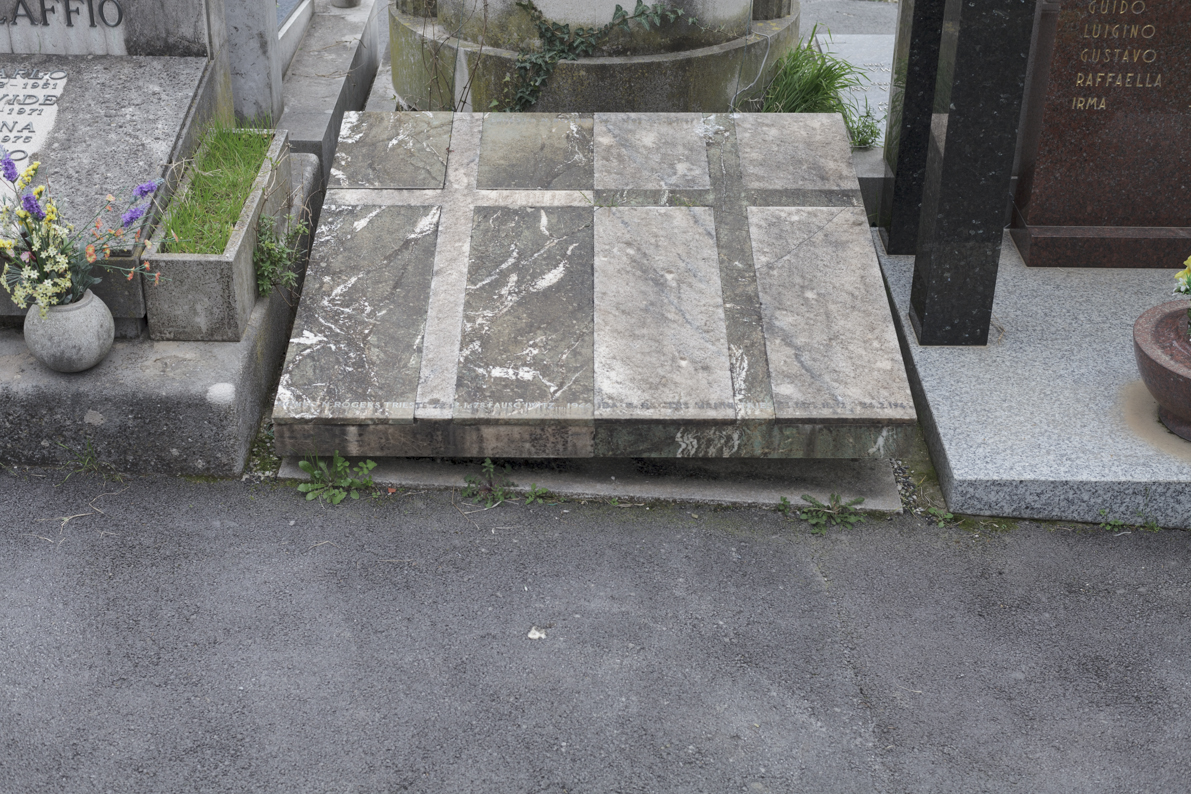 Disegnata negli anni Sessanta è costruita con due lastre di marmo, una rosa e una verde, appoggiate su di un basamento arretrato, poco più alto del terreno circostante, inclinato .