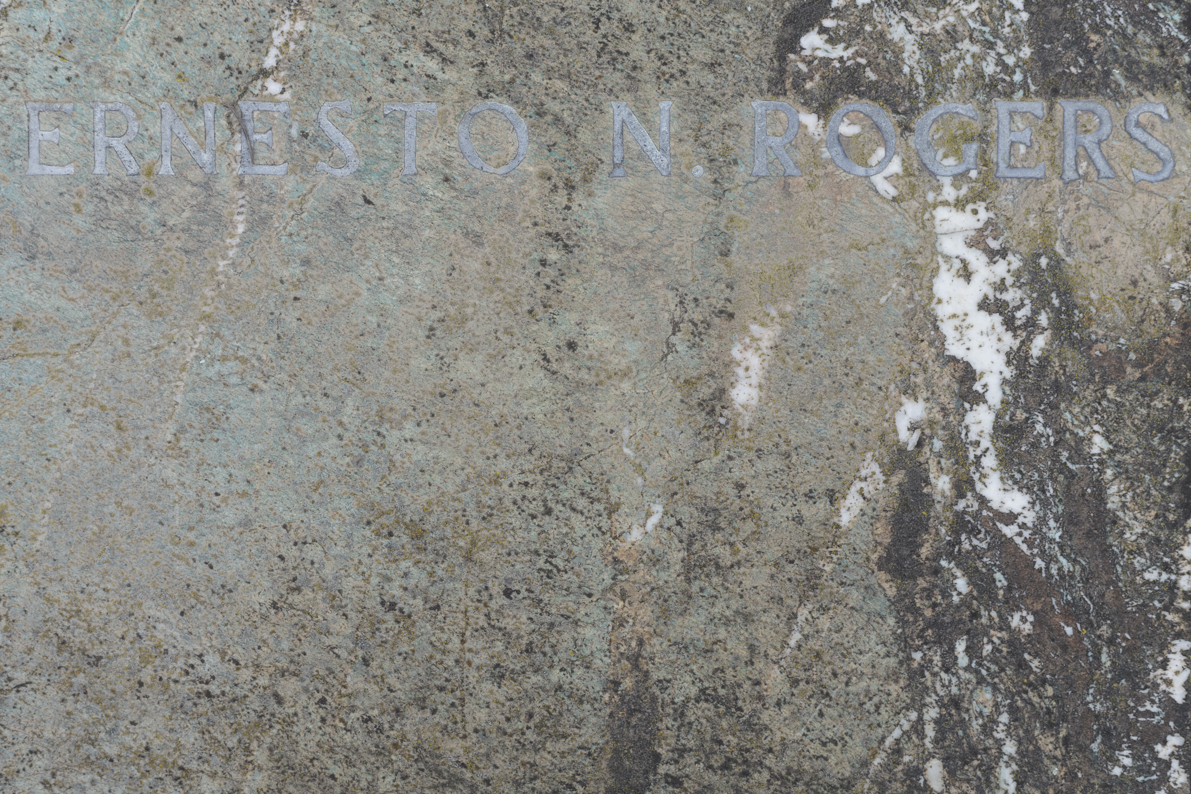 Disegnata negli anni Sessanta è costruita con due lastre di marmo, una rosa e una verde, appoggiate su di un basamento arretrato, poco più alto del terreno circostante, inclinato .